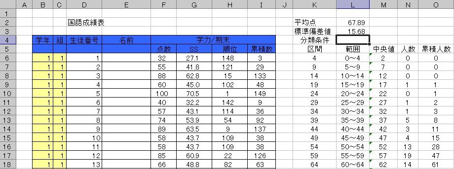 図 App-3.1 国語成績表 (シート全体はこちら、国語成績整理.pdfへのリンク)