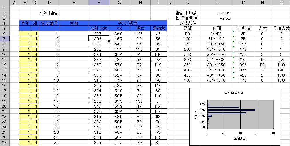 図 App-3.2 5教科合計成績表