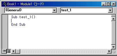 2) サブプロシージャの先頭と末尾の2行が既に入力された状態でマクロ編集画面が