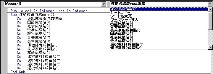 を考慮して、科目別に貼付用マクロプログラムを作成しておき、別途それらを順番にメイン