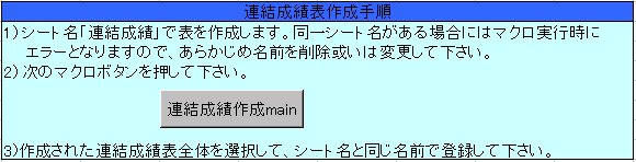 以下に、国語成績貼付マクロプログラムを掲げます。左記の「連結成績表準備」マクロ