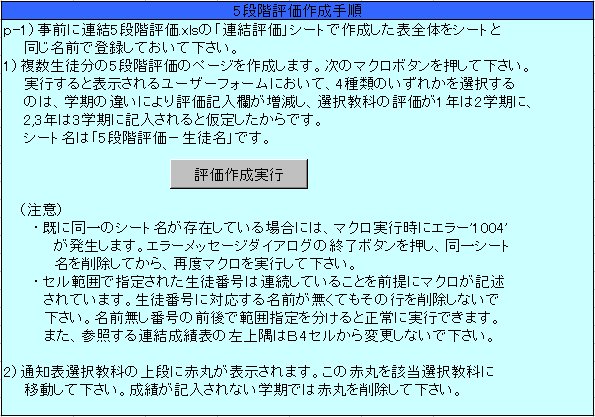 セクション末尾に掲げた「通知表Readme」シートの「5段階評価作成手順」にあるマクロ