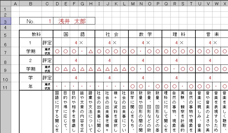 このマクロプログラムは、4つのケースいずれの通知表にも対応可能としているので、